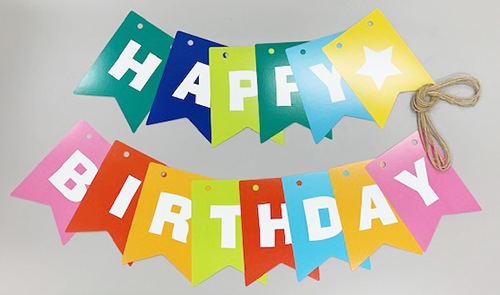 ●バースデーガーランド(フラッグ、麻ひも2.5m)