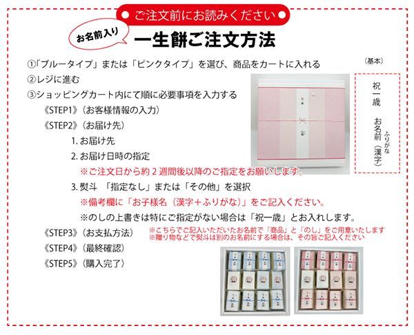 ※「お餅に巻く紙」と「箱に貼るのし紙」にお名前をお入れします。