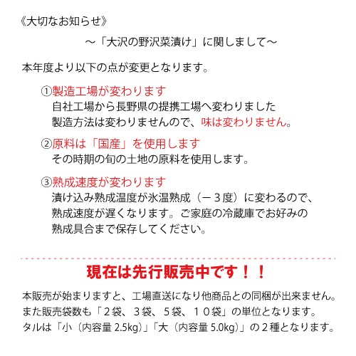 ・「野沢菜漬けのみ」の発送の場合は、変わらず長野の製造所からの直送となります。